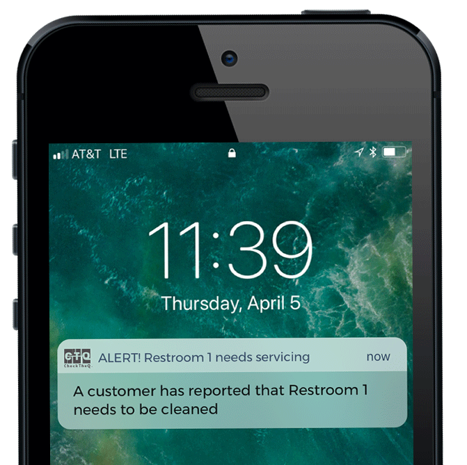 Staff members receive alerts when restroom users send feedback. You choose how you're notified.